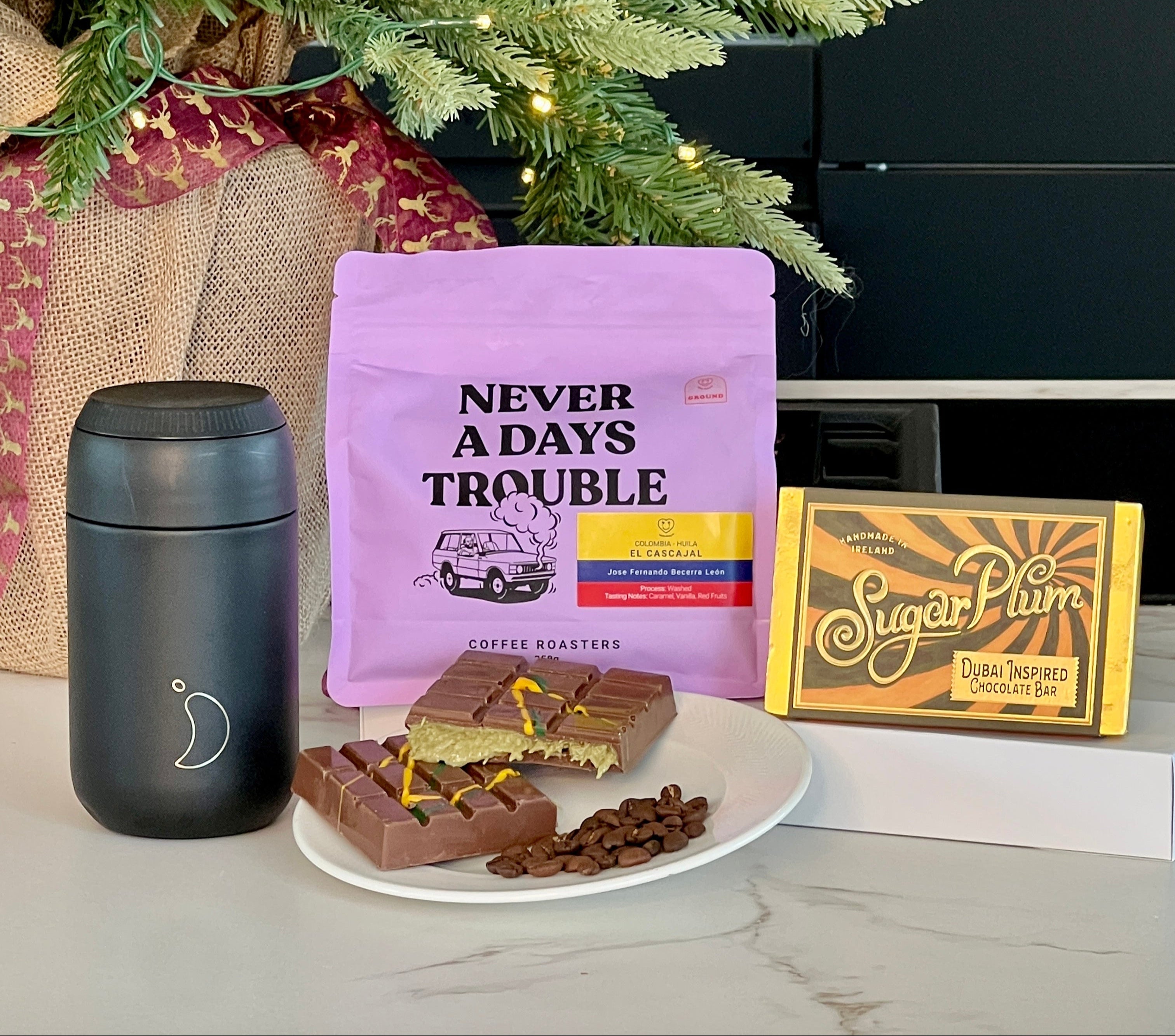 From the first aromatic sip of freshly brewed artisan coffee to the indulgent bite of smooth chocolate, every element has been chosen to transform an ordinary moment into something special. The premium Chilly’s reusable cup combines elegance with practicality, keeping your coffee at the perfect temperature whether you’re rushing to work, catching a train or enjoying a weekend stroll. Thoughtful, stylish and functional, this hamper makes a statement: that your time, energy and taste matter.